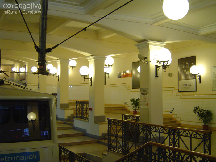 一方、写真のチェントラーレ線はGalleria UmbertoⅠ(ウンベルト一世のガッレリア)付近に始発駅があるせいか駅内部の装飾も美しい。乗車券は90分間使える(2003年当時)。
