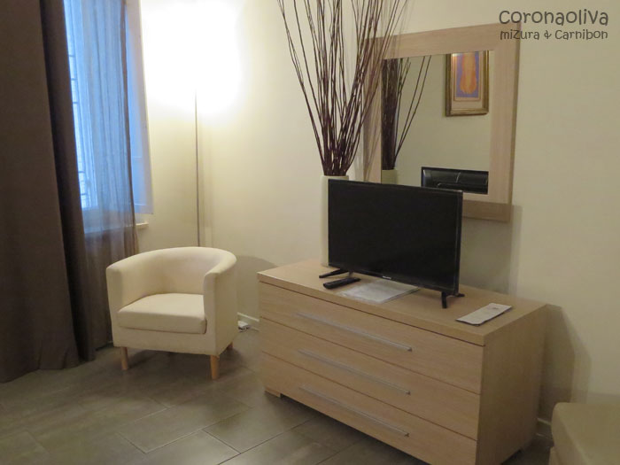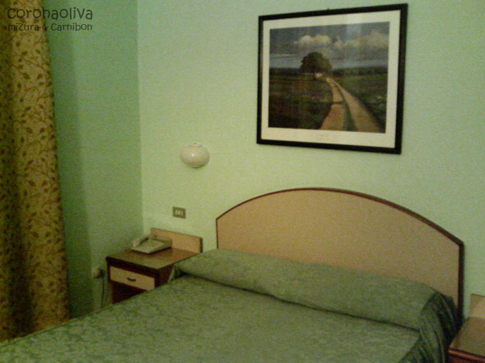 75ユーロでDoppia(2人部屋)のCon Bagno(シャワー・トイレ付)、バールでの朝食付き。全部屋そうか知らんがなんとキッチンもついており(それも普段はオサレに扉で隠されてある)、自炊に挑戦してみるものいいやも。正直また泊まりたし。