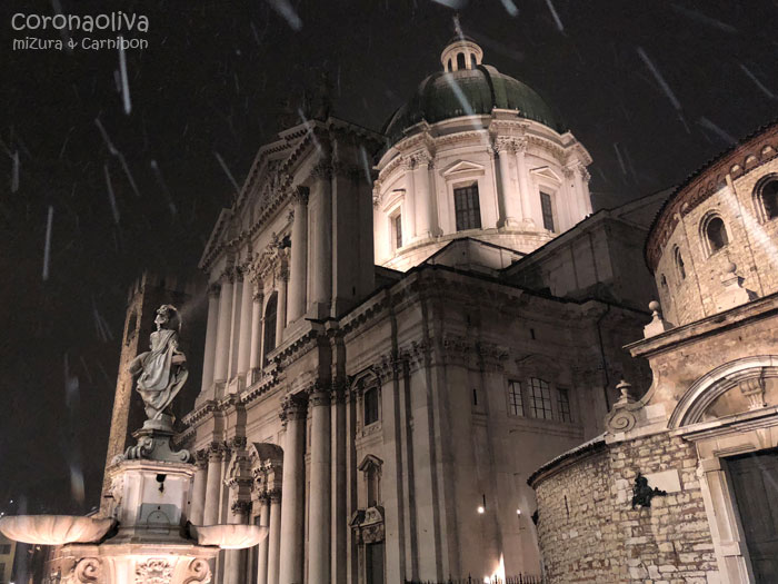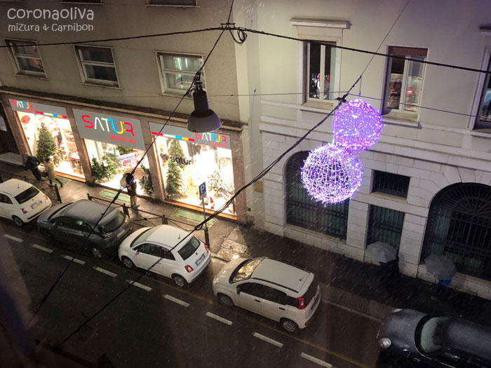 12月のイタリア北部だけに、夕方ごろから降り出したベタ雪で体感温度は低い。