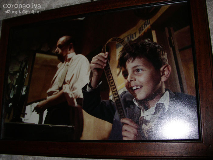 パラダイス座があった付近に立つお宿も備えたリストランテ。シックなカウンターと石造りの壁がまず目に飛び込み、落ち着いた店内にはファン垂涎のお宝、映画撮影時のスナップが飾られておりますぞ!